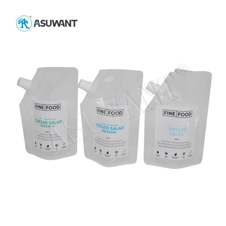 Saincheaptha iniompartha iniompartha trédhearcach sú féin-shéalaithe pacáistiú mála deoch leachtach leachtach le nozzle poircealláin